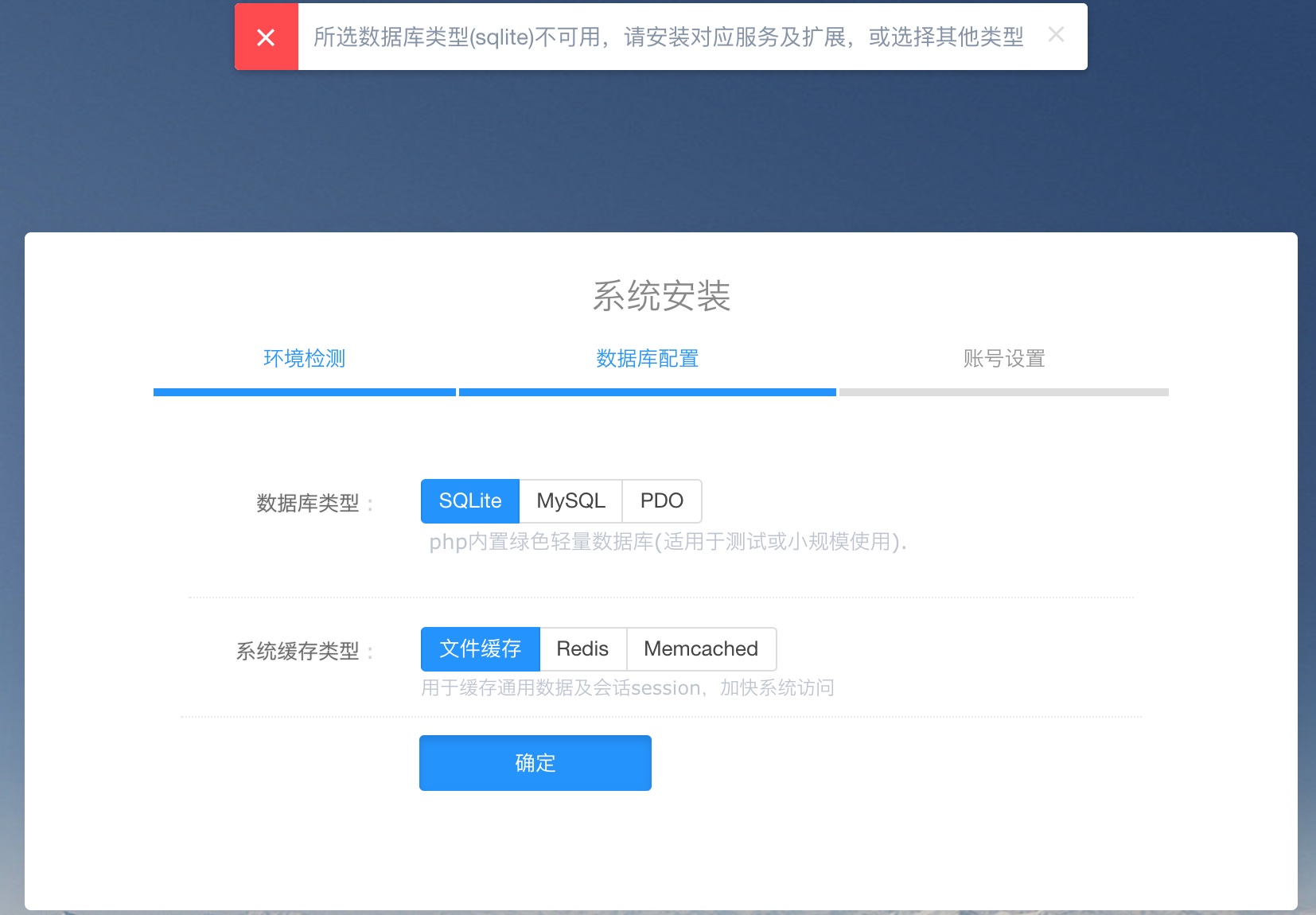 再次刷新,可以正常选择sqlite,设置账号密码。安装完成